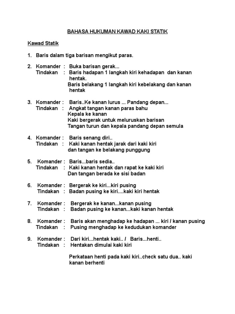 Bahasa Hukuman Kawad Kaki Pengakap Docx Document
