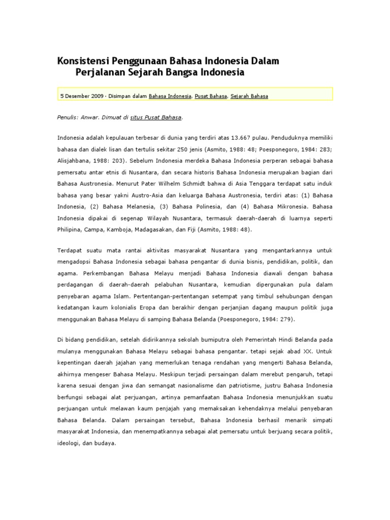 Konsistensi Penggunaan Bahasa Indonesia Dalam Perjalanan Sejarah Bangsa
