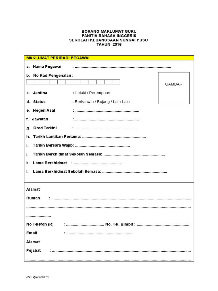 Borang Maklumat Guru Panitia Bahasa Melayu