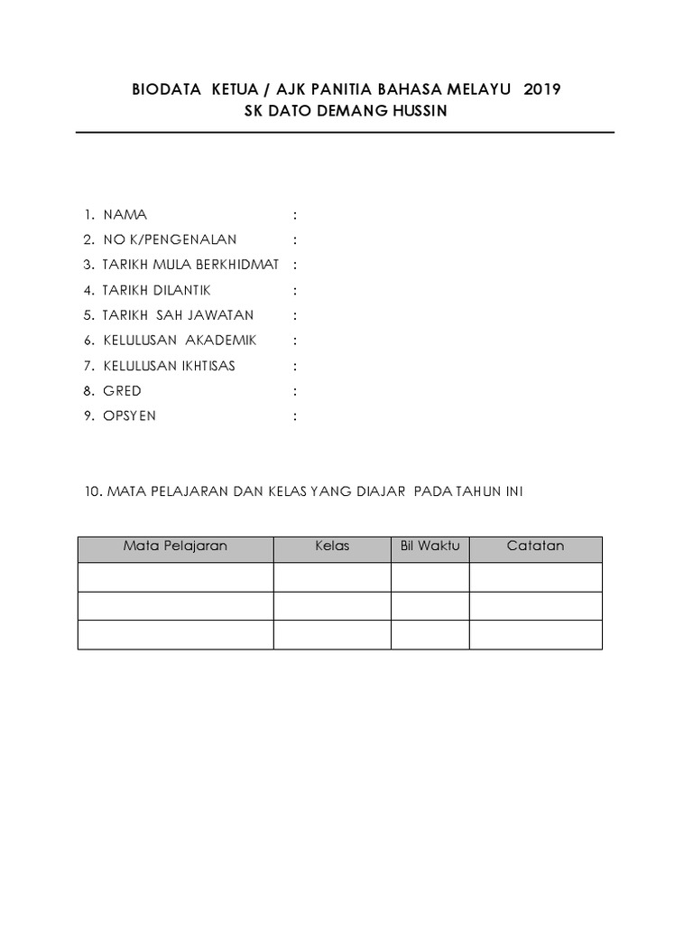 Borang maklumat guru panitia bahasa melayu. Dalam panitia tentunya mempunyai guru guru yang melaksanakannya. To enable screen reader support press ctrl alt z to learn about keyboard shortcuts press ctrl slash. Menerapkan nilai nilai murni dalam kalangan murid guru dan kakitangan sekolah dan membentuk akhlak mulia warganya. Minit mesyuarat panitia mata pelajaran.
