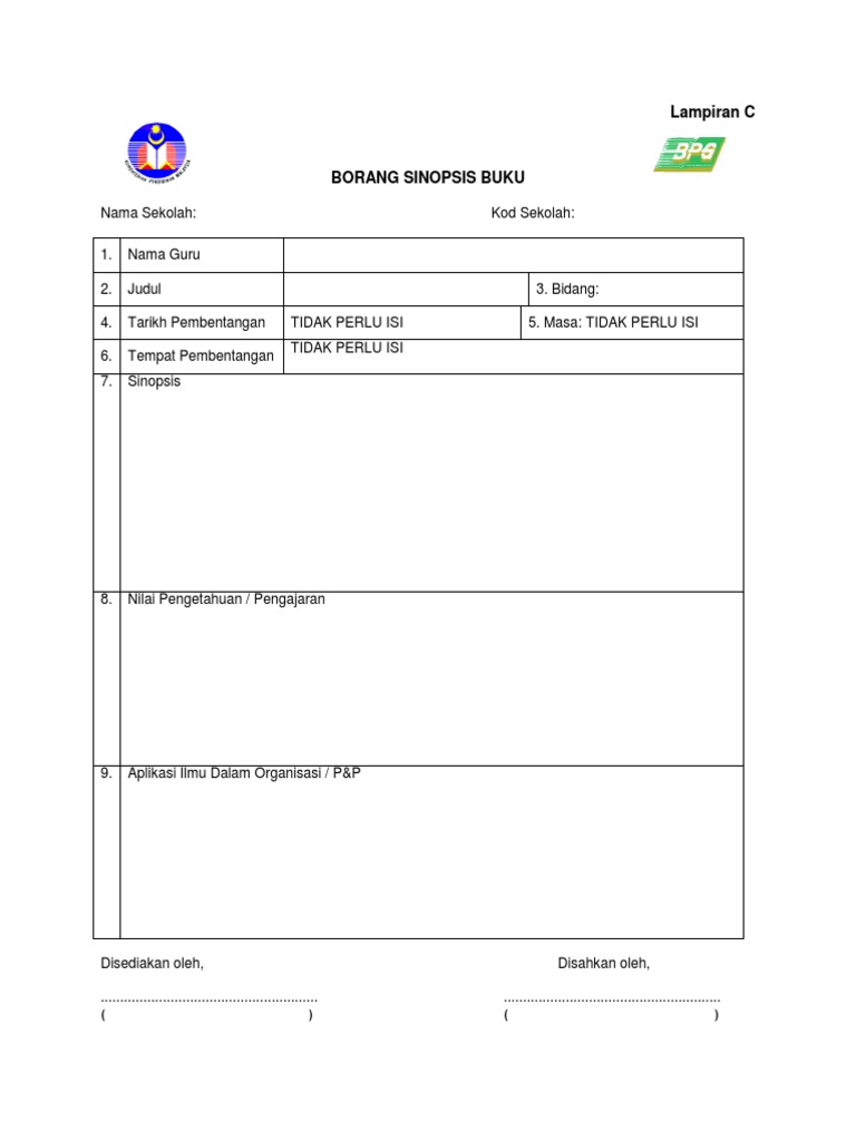 Borang Sinopsis Buku Sesi 2014 Doc