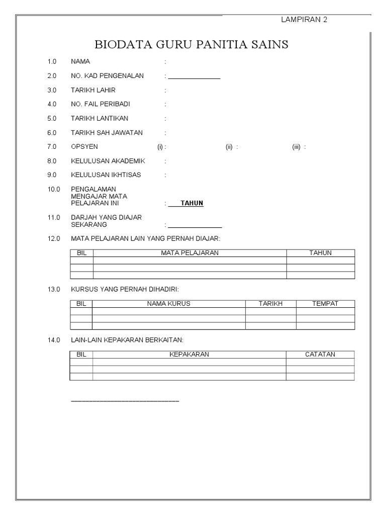 Contoh Borang Biodata Guru Untuk Fail Panitia
