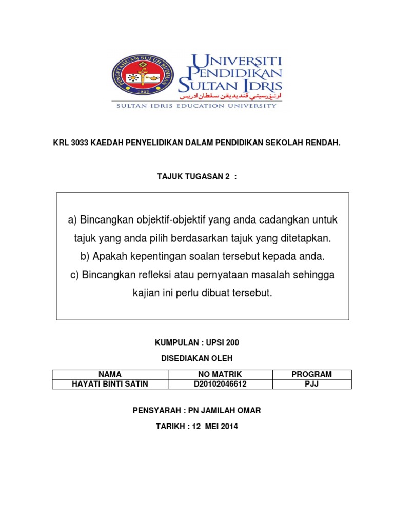 Tugasan 2 Krl 3033 Kaedah Penyelidikan Dalam Pendidikan Sekolah Rendah Pdf