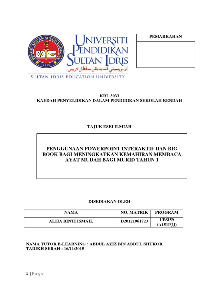 Doc Kod Nama Kursus Krl 3033 Kaedah Penyelidikan Dalam Pendidikan Sekolah Rendah Mohd Sahrol Nizam Academia Edu