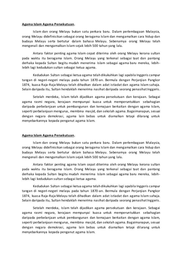 Malaysia ialah sebuah negara berbilang budaya dan agama dan agama rasminya adalah islam sehingga banci penduduk dan perumahan 2010 61 3 peratus daripada penduduk menganuti islam. يڠ دڤرتوان اڬوڠ ialah gelaran rasmi bagi ketua negara malaysia gelaran rasmi yang penuh adalah kebawah duli yang maha mulia seri paduka baginda yang di pertuan agong yang di pertuan agong adalah salah satu daripada beberapa bentuk monarki di dunia dengan raja yang dipilih. Dalam pada itu juga syarat2 juga telah dikenakan contohnya bantuan kewangan di setiap sekolah yang ada di malaysia. Di bawah akta pelajaran.