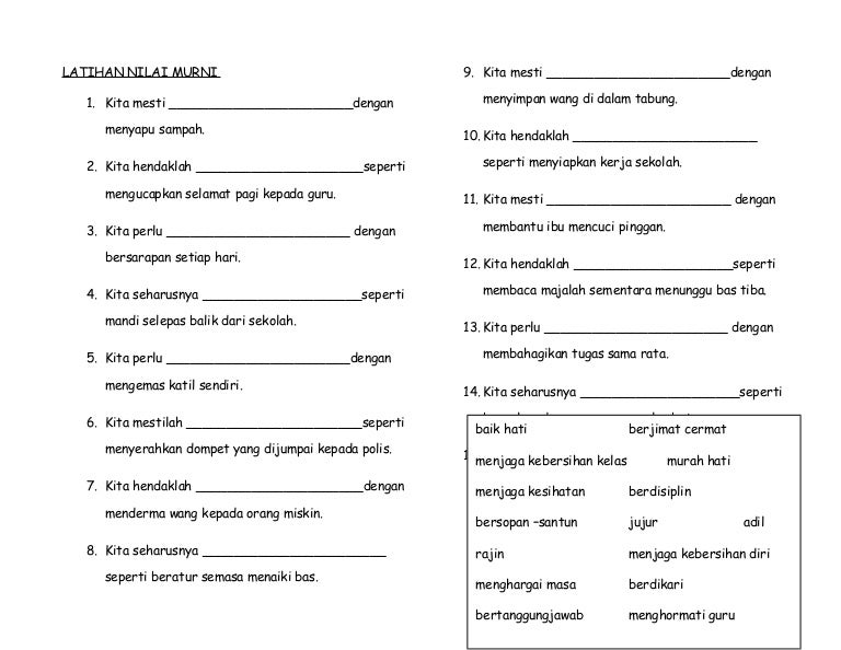 Latihan Nilai Murni Tahun 4 Pdf Document