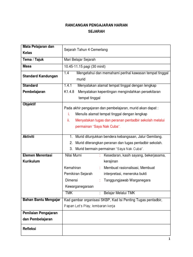 Rph Sejarah Tahun 4 1 1