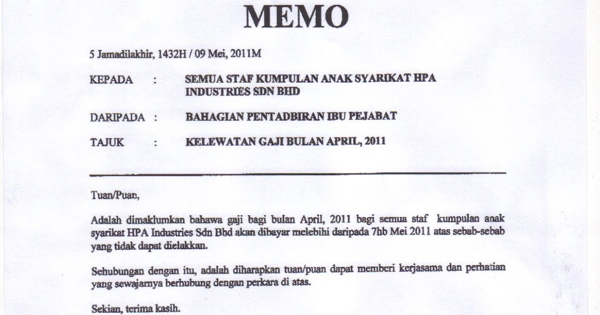 Lynnhr Ppzs Memo Kelewatan Gaji Perhatian Tentang Memo Etika Pemakaian Tindakan Akan Di Ambil Jika Tidak Di Patuhi
