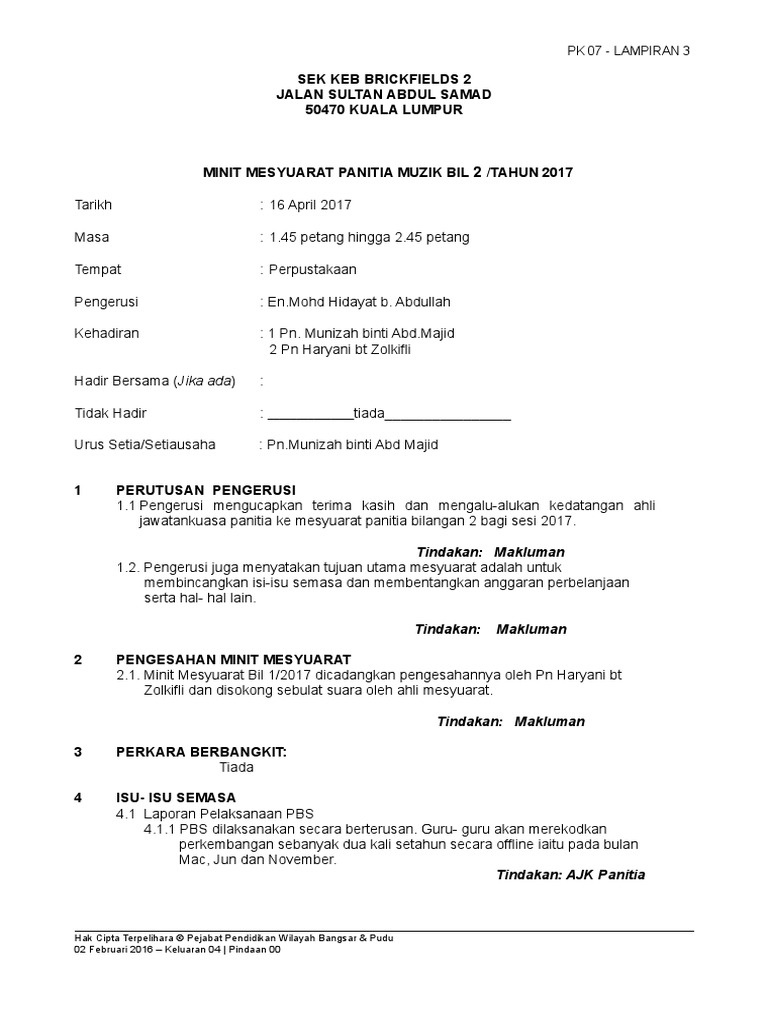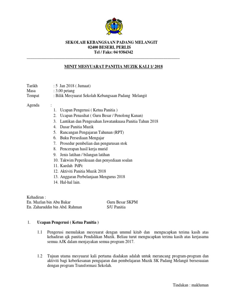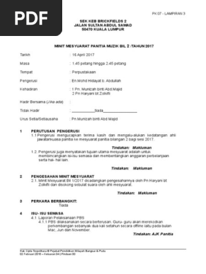 Minit Mesyuarat Panitia Muzik Kali 1 2017 Doc