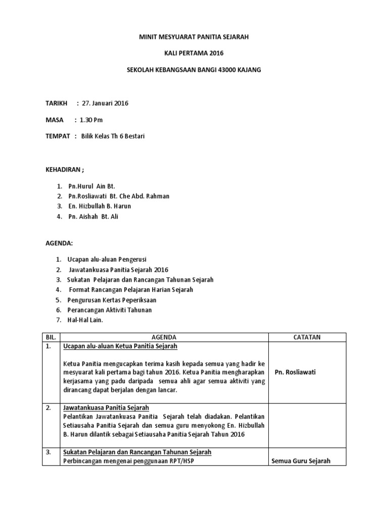Minit Mesyuarat Sejarah 2019 Pages 1 4 Text Version Anyflip