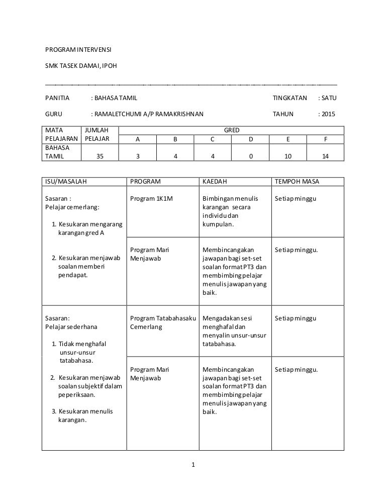 Contoh Pelan Intervensi Bahasa Inggeris Tahun 6 Raihan Jalaludin S Blog