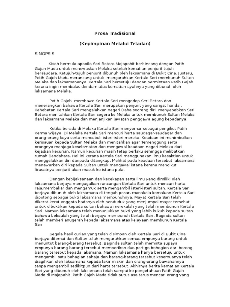 Prosa Tradisional Kepimpinan Melalui Teladan By Puteri Batrisyia