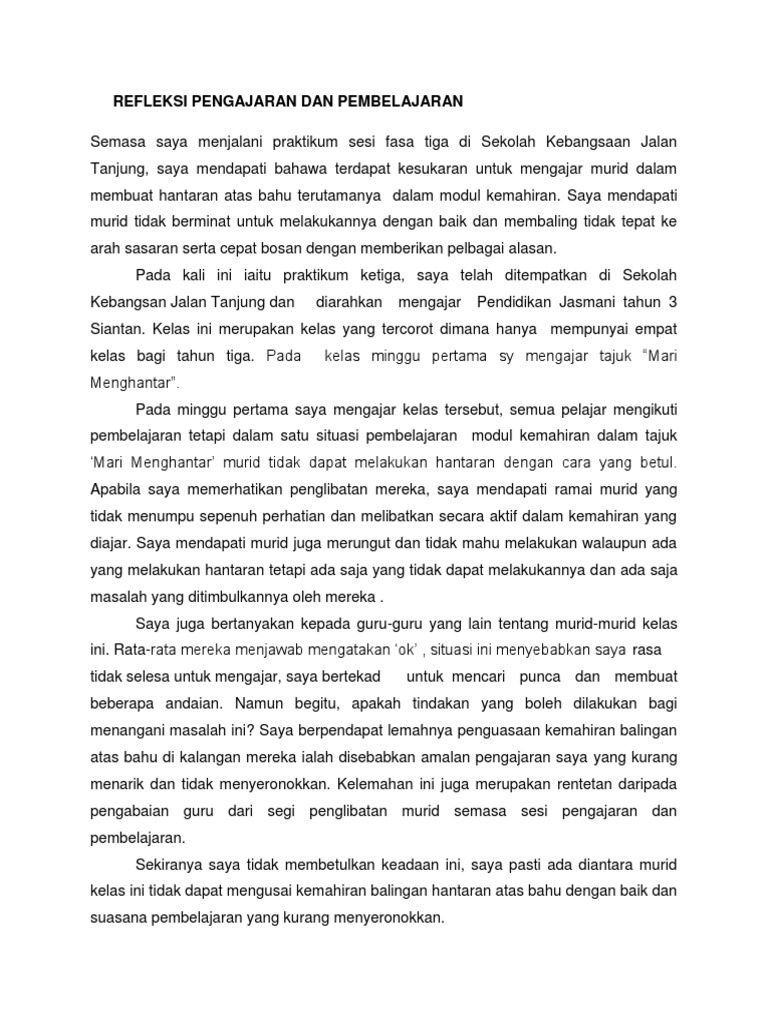 Refleksi Pengajaran Dan Pembelajaran K Prashana Nair Kumaran Academia Edu