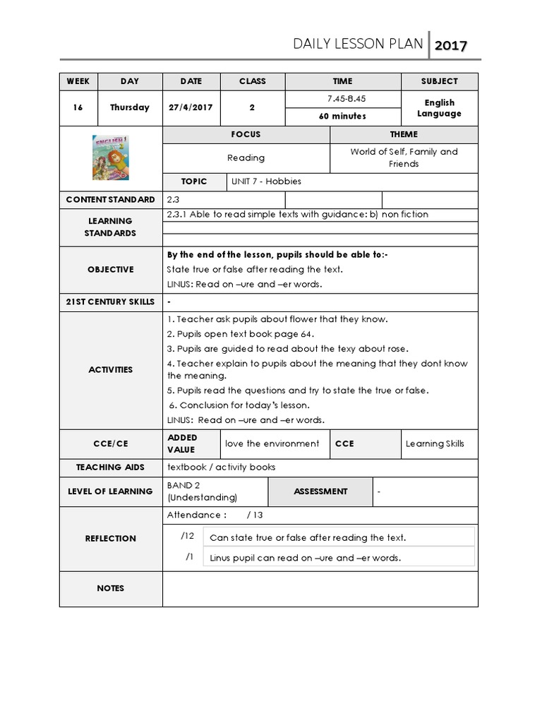 Lesson Plan Year 3 Cefr 2018