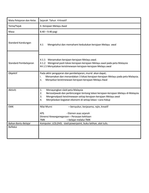 Doc Rancangan Pengajaran Harian Sejarah Tahun 4 Mem Mm Academia Edu