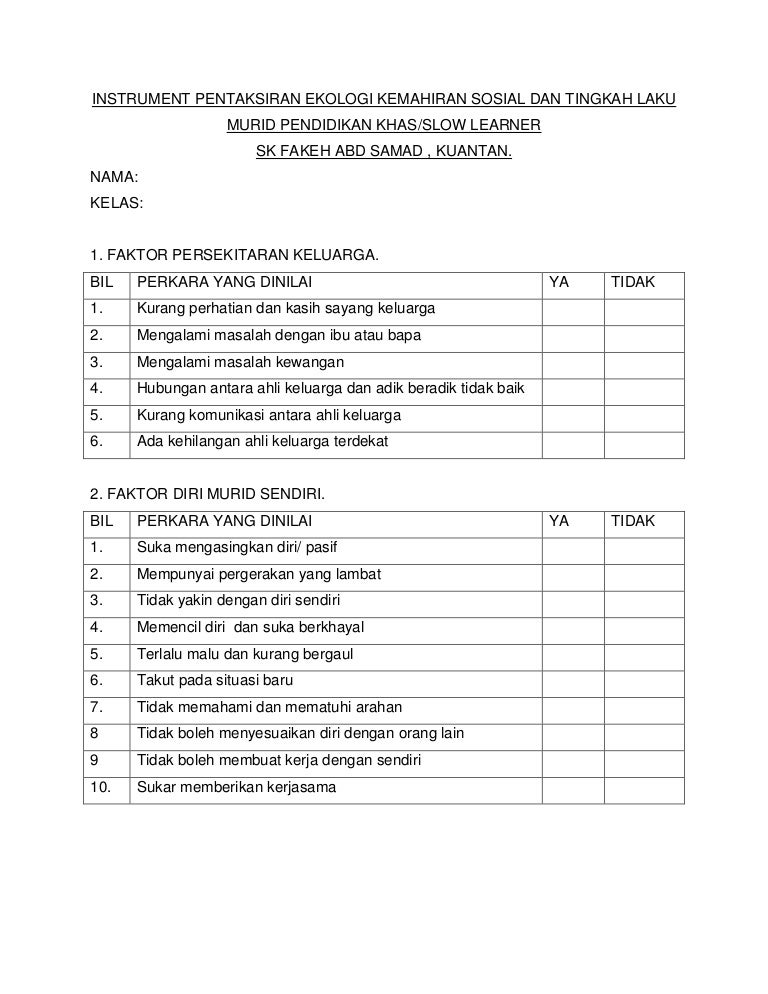 Senarai Semak Tingkah Laku Murid