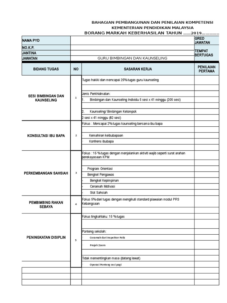Borang Keberhasilan 2019 Contoh Kaunseling