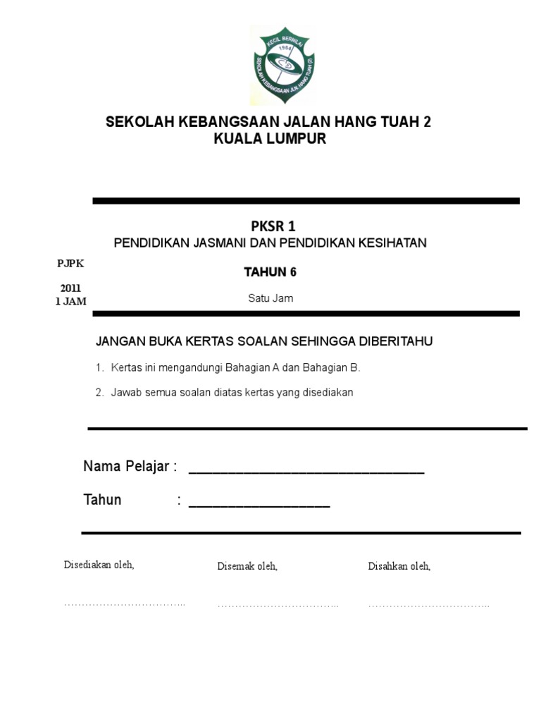 Peperiksaan Pertengahan Tahun Pendidikan Kesihatan Pk Tahun 6