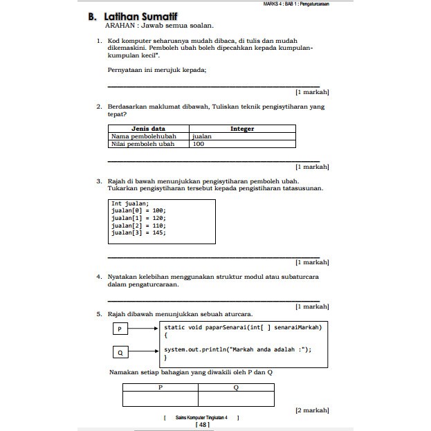 Soalan Peperiksaan Akhir Tahun Sains Komputer Tingkatan 4