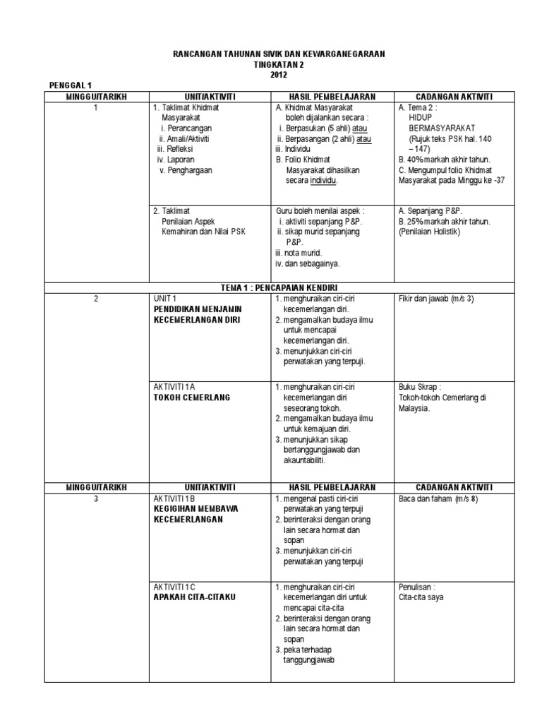 Rancangan Pelajaran Tahunan Psk Tingkatan 2 2011